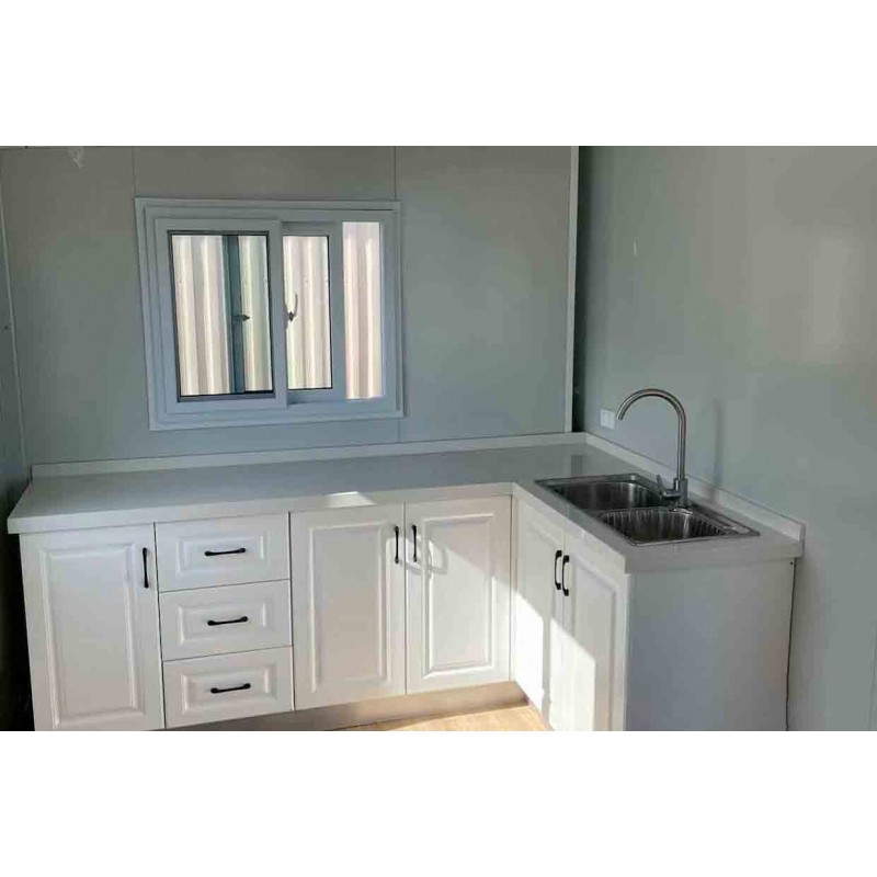 The EMC heavy duty 398Sq.ft Mobile Expandable House Including one bathroom and one kitchen. Gable roof provides better insulation and increase the ability to withstand snow. It is easy to transport and install, can be used as an office or living house. The strong galvanized steel square tube frame and reinforced roof will last for many years.